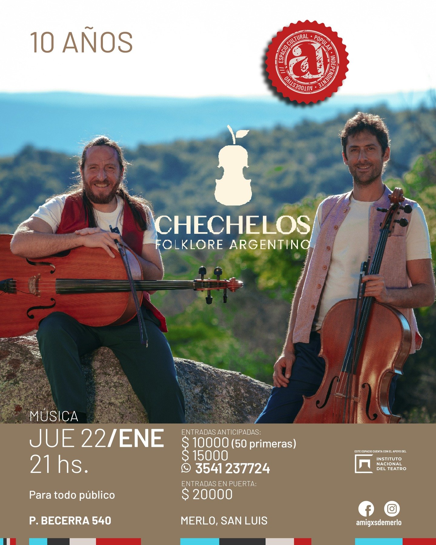 A lo largo de estos 10 años, CheChelos ha recorrido los principales festivales del país, se consagraron como Revelación en Cosquín 2017 y han llevado su música a diversos países de América y Europa. Ahora, llegan con una propuesta renovada que explora una nueva sonoridad, donde el violonchelo y el folclore argentino se fusionan de […]