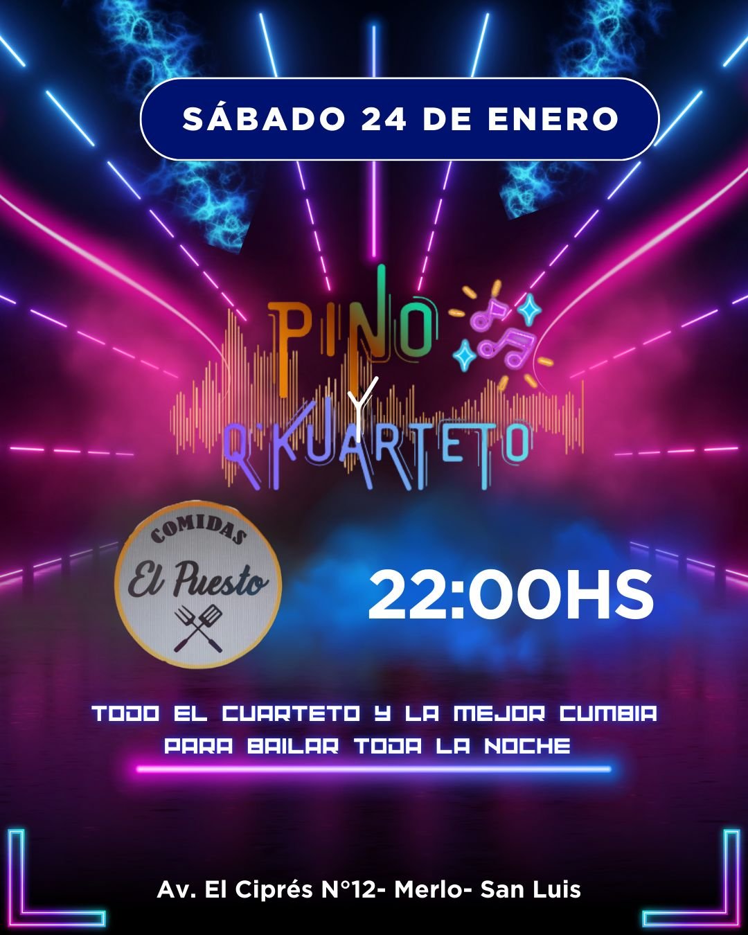 ✨🔥 NOCHE DE BAILE EN VIVO 🔥✨📅 Sábado 24 de enero⏰ Desde las 22:00 hs 🎤🎧 PINO y Q KuartetoTodo el cuarteto y la mejor cumbia para bailar toda la noche 💥🕺💃 🍽️ Comidas: El Puesto📍 Av. El Ciprés N°12 – Merlo, San Luis Buena música, buena comida y toda la fiesta asegurada 🎉¡No te […]