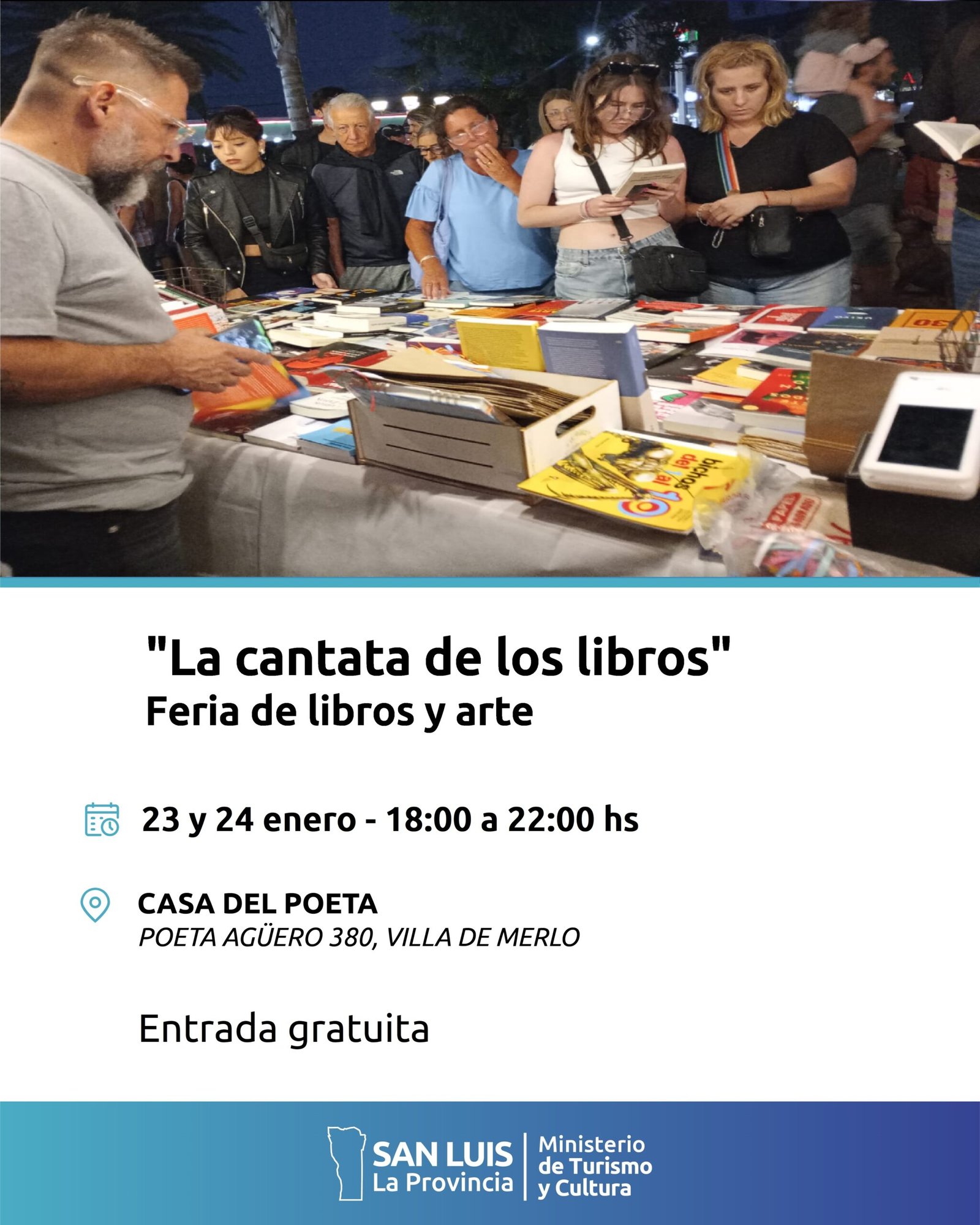 📚🎶 La Cantata de los Libros 🎨✨Te invitamos a vivir un encuentro único de libros, arte y música. 🗓 Viernes 23 y sábado 24 de enero de 2026⏰ De 18 a 22 hs📍 Casa del Poeta Antonio Esteban Agüero(Poeta Agüero y Marqués de Sobremonte) ✨ Feria de libros🎨 Feria de arte🎶 Música en vivo👩🎨 Artistas […]