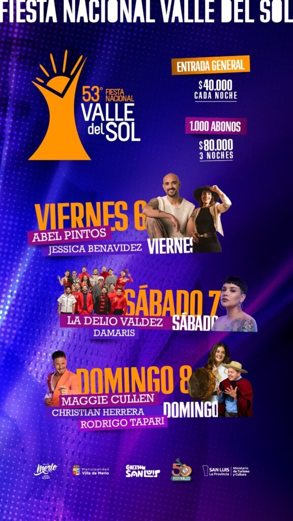 El 6, 7 y 8 de febrero se viene una nueva edición del Festival Valle del sol que hará vibrar a Villa de Merlo durante tres noches de música en vivo 🎤
