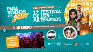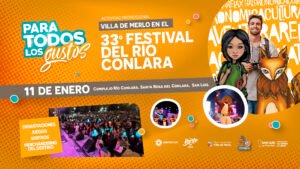 Dando continuidad al posicionamiento, este próximo domingo 11 de enero seguiremos acompañando la campaña impulsada por el Ministerio de Turismo y Cultura de la provincia 50 Festivales. En esta ocasión, estando presentes en la 33° edición del Festival del Río Conlara, en Santa Rosa. Durante el festival habrá una propuesta interactiva que incluye degustaciones, juegos, sorteos y entrega de merchandising oficial. Estas acciones buscan invitar a disfrutar de nuestra Villa y seguir consolidando a Merlo destino referente del turismo regional, participando de la agenda cultural de toda la provincia.