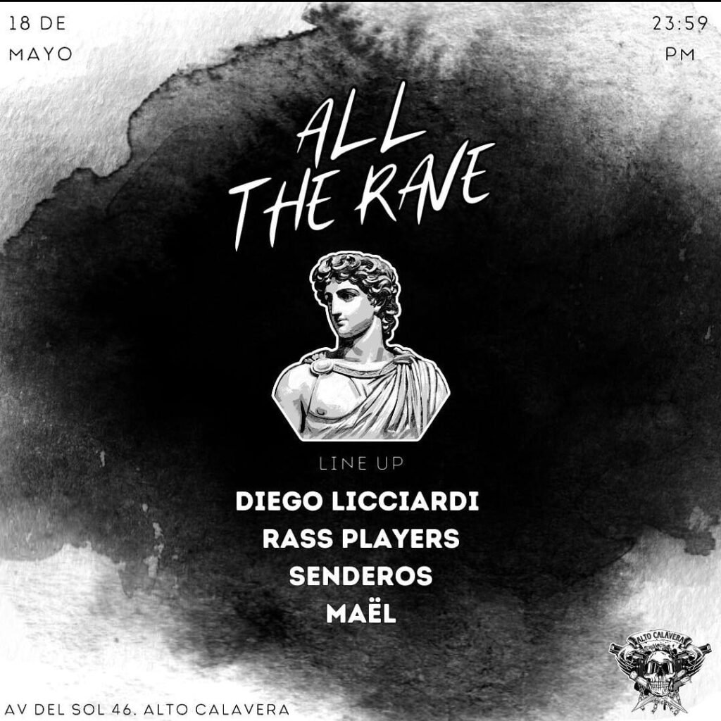 Creadores de momentos y experiencias 18-5 tenemos ALL THE RAVE otra vez nos volvemos a ver Line up: Diego Licciardi Rass Players Facu Senderos Maël Contamos con: 2×1 bebidas de